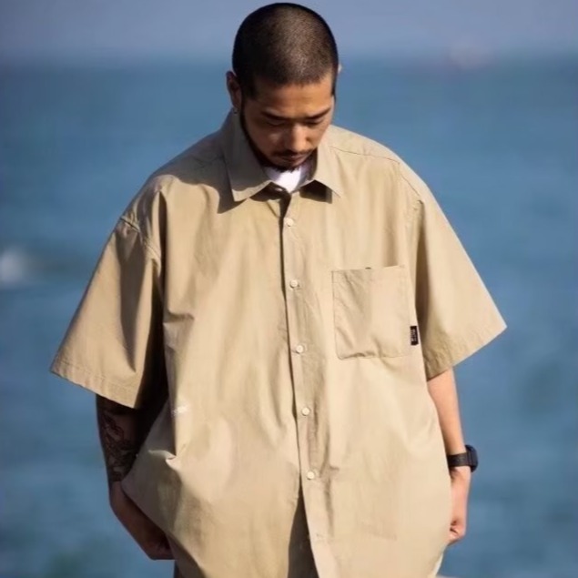 『癮品流行』男生夏季襯衫 原宿風襯衫外套 五分袖襯衣 翻領上衣 純色簡約 單排紐扣設計感 休閒百搭 M-2XL