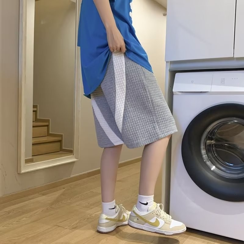 『癮品流行』韓式華夫格短褲 五分褲 休閒短褲 運動短褲 寬鬆闊腿褲 純色簡約 休閒百搭 M-2XL