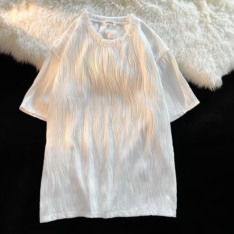 『癮品流行』水波紋短袖T恤 男生夏季T恤 圓領上衣 素色T恤 休閒百搭 純色簡約 小碼寬鬆 M-2XL