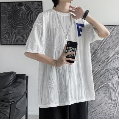 『癮品流行』水波紋T恤 夏季短袖T恤男 T恤男 素色T恤 個性設計感 休閒百搭 小碼寬鬆 M-2XL