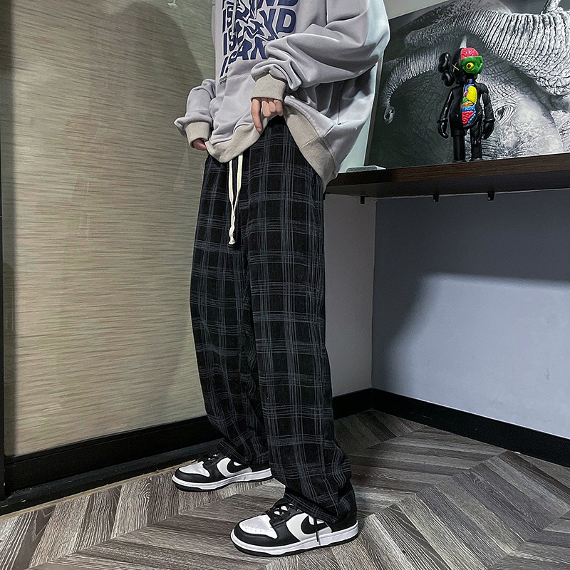 『癮品流行』格子褲 格紋長褲 縮口褲 直筒褲 格子長褲 褲子格子褲女生男生褲子休閒長褲