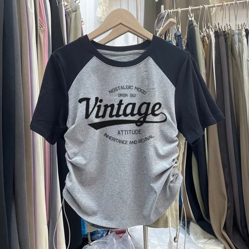 『癮品流行』正韓辣妹上衣 字母印花 抽繩上衣 顯瘦 修身上衣女 韓版上衣 白色上衣 短板上衣 短版上衣短袖