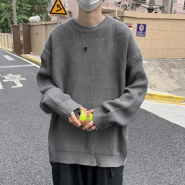 『癮品流行』日系素色毛線衣 秋冬季新款毛衣 男士寬鬆 韓版 學生 打底針織衫 秋裝上衣 情侶款 男女同款