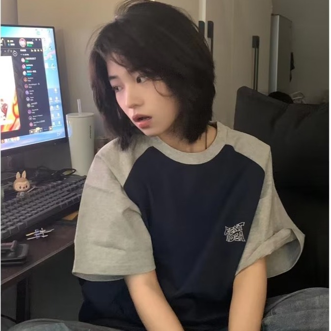 『癮品流行』日韓靚飾 韓版T恤 女生T恤 女夏裝新款寬鬆短袖拼接t恤女裝韓版百搭印花上衣女簡約打底衫女學生