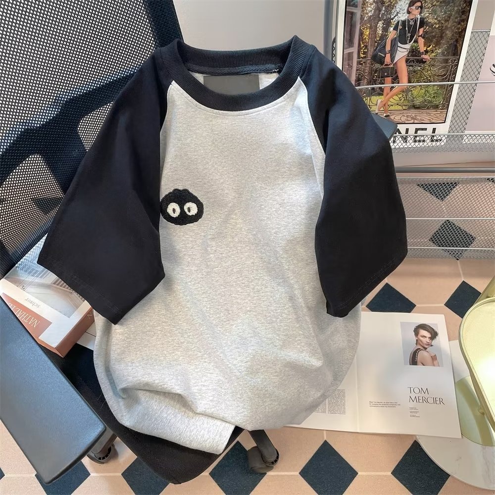 『癮品流行』刺繡韓版 圓領上衣 純棉短袖 女生學生 寬鬆百搭上衣 潮流半袖 美式oversize慵懶風短袖