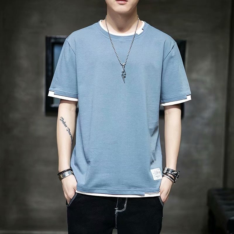 『癮品流行』台灣出貨 男生短袖 拼接T恤 多層次穿搭T恤 五分袖 短t 夏天衣服 韓版男裝 假兩件上衣 男生寬鬆T恤