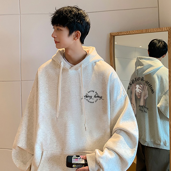 『癮品流行』連帽衛衣男 Oversize印花衛衣男 秋冬新款 帽t 大學t 潮牌男生衣服大尺碼長袖上衣男
