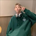 『癮品流行』墨綠色 加絨加厚街頭潮流學生ins印花連帽衛衣寬松百搭情侶男女潮 帽T 大學T 上衣 T恤 男 薄款可選