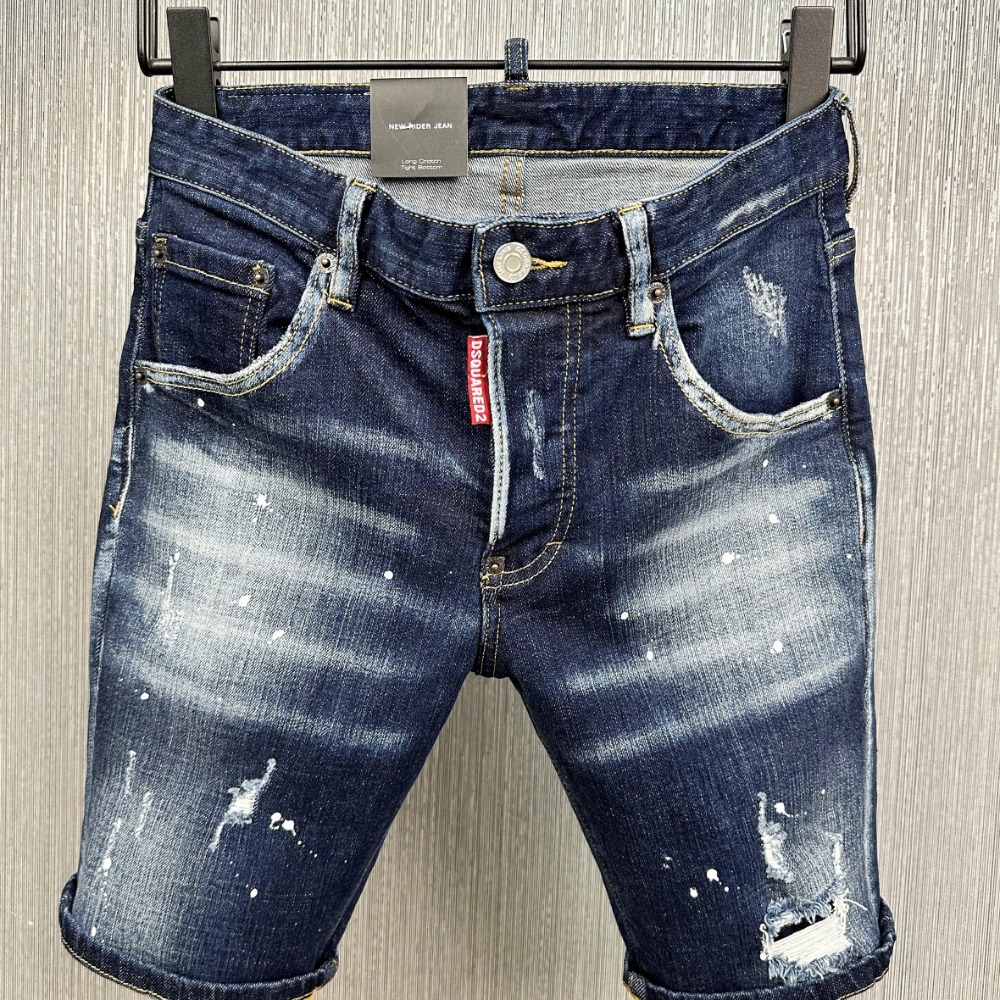 D2牛仔褲男士夏季新款牛仔短褲修身牛仔短褲破洞褲刀割牛仔褲男士短褲藍色牛仔褲短褲潮流牛仔短褲