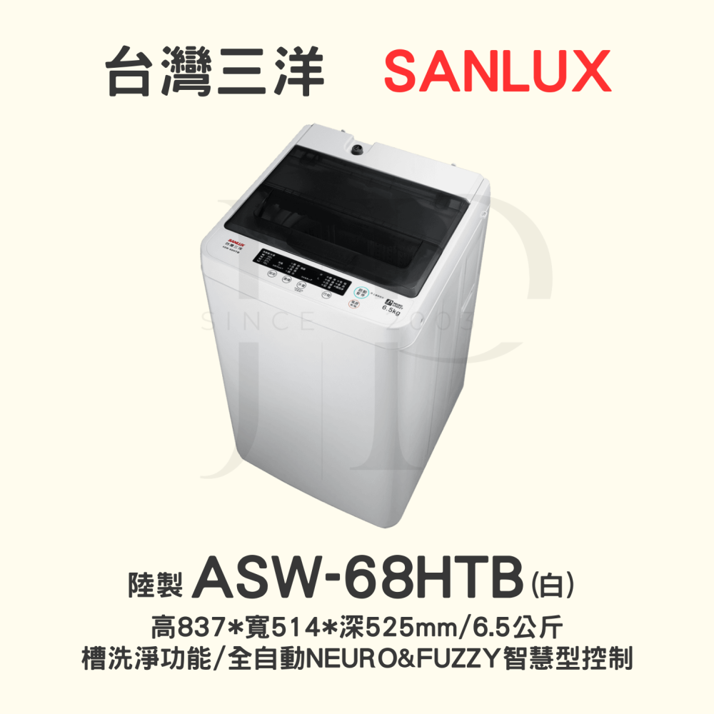 【房東最愛】三洋洗衣機ASW-68HTB套房專用6.5KG【刷卡分期免手續費】貨到付更優惠