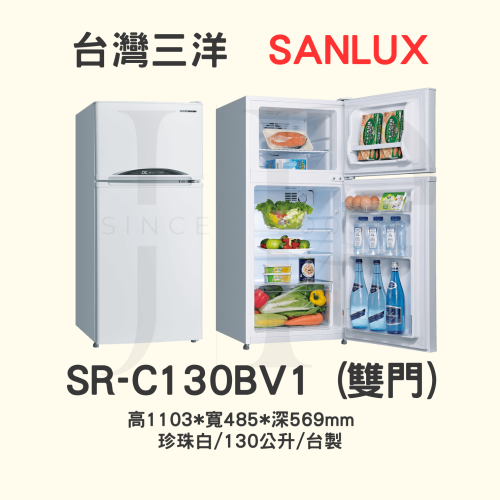 【三洋變頻雙門冰箱 】SR-C130BV1【130L】【刷卡分期免手續費】現金另有優惠