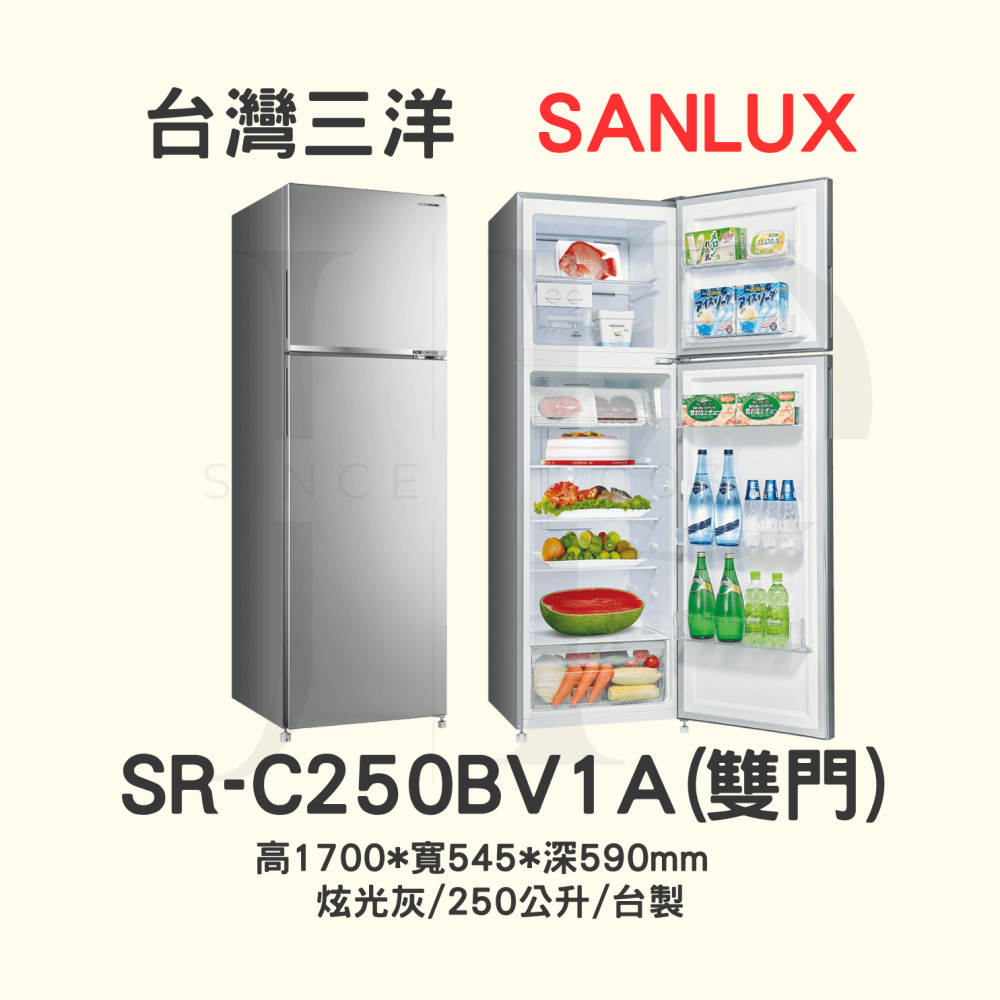 【三洋變頻雙門冰箱 】SR-C250BV1A【250L】【刷卡分期免手續費】現金另有優惠
