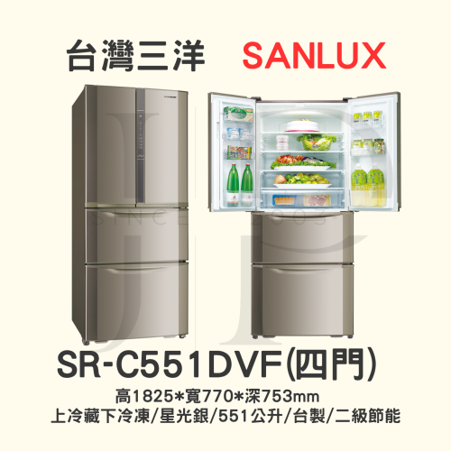 【三洋變頻四門冰箱 】SR-C551DVF【551L】【刷卡分期免手續費】現金另有優惠 多台另議~