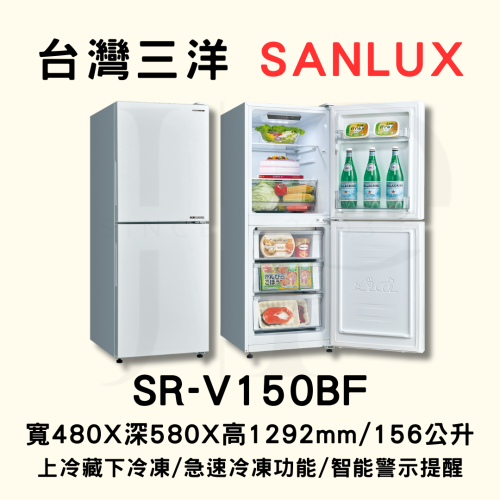 【可申請退稅/汰舊換新最高5000元 】三洋冰箱SR-V150BF【156L】【刷卡分期免手續費】現金另有優惠