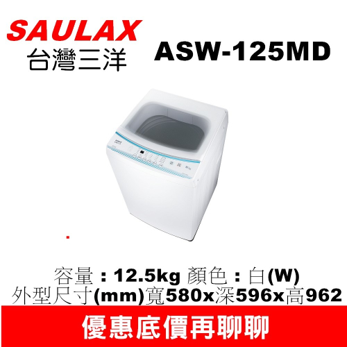 【三洋媽媽樂 】ASW-125MD 洗衣機12.5KG【刷卡分期免手續費】貨到付更優惠