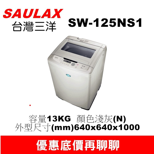 【三洋媽媽樂 】SW-125NS1 三洋 洗衣機13KG【刷卡分期免手續費】貨到付更優惠