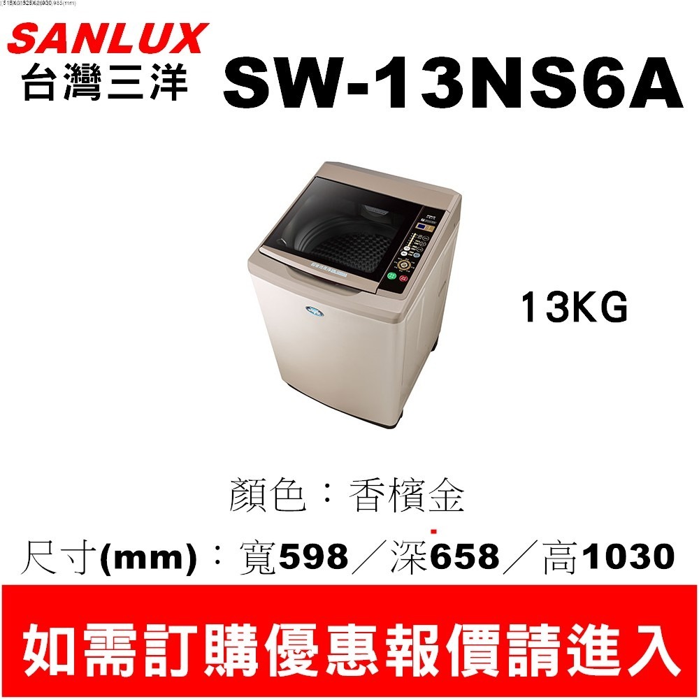 【三洋媽媽樂 】SW-13NS6A三洋超音波洗衣機13KG【刷卡分期免手續費】貨到付更優惠