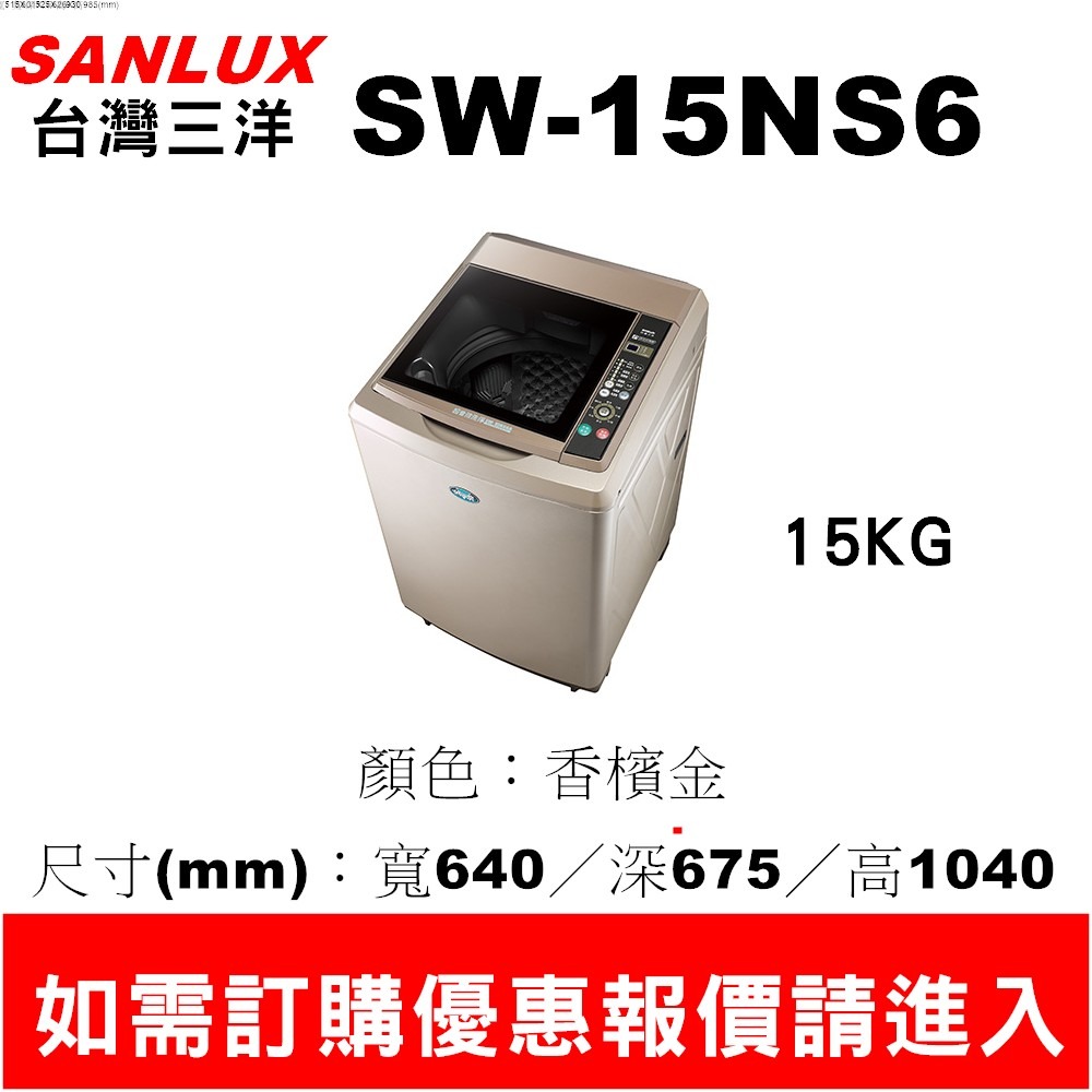 【三洋媽媽樂 】SW-15NS6三洋超音波洗衣機15KG【刷卡分期免手續費】貨到付更優惠