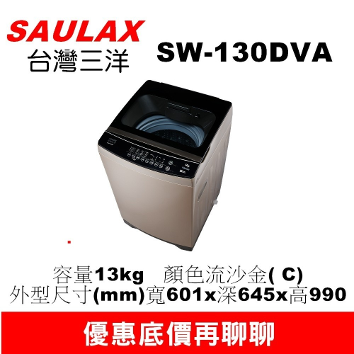 【三洋媽媽樂 】SW-130DVA三洋變頻洗衣機13KG【刷卡分期免手續費】貨到付更優惠