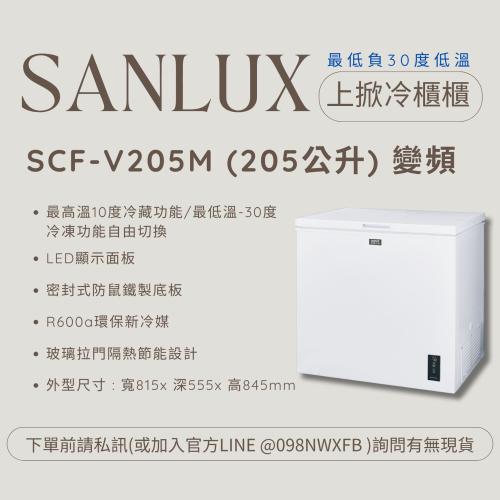 台灣三洋上掀式冷凍櫃 SCF-V205M 【205公升】【刷卡分期免手續費】貨到付更優惠