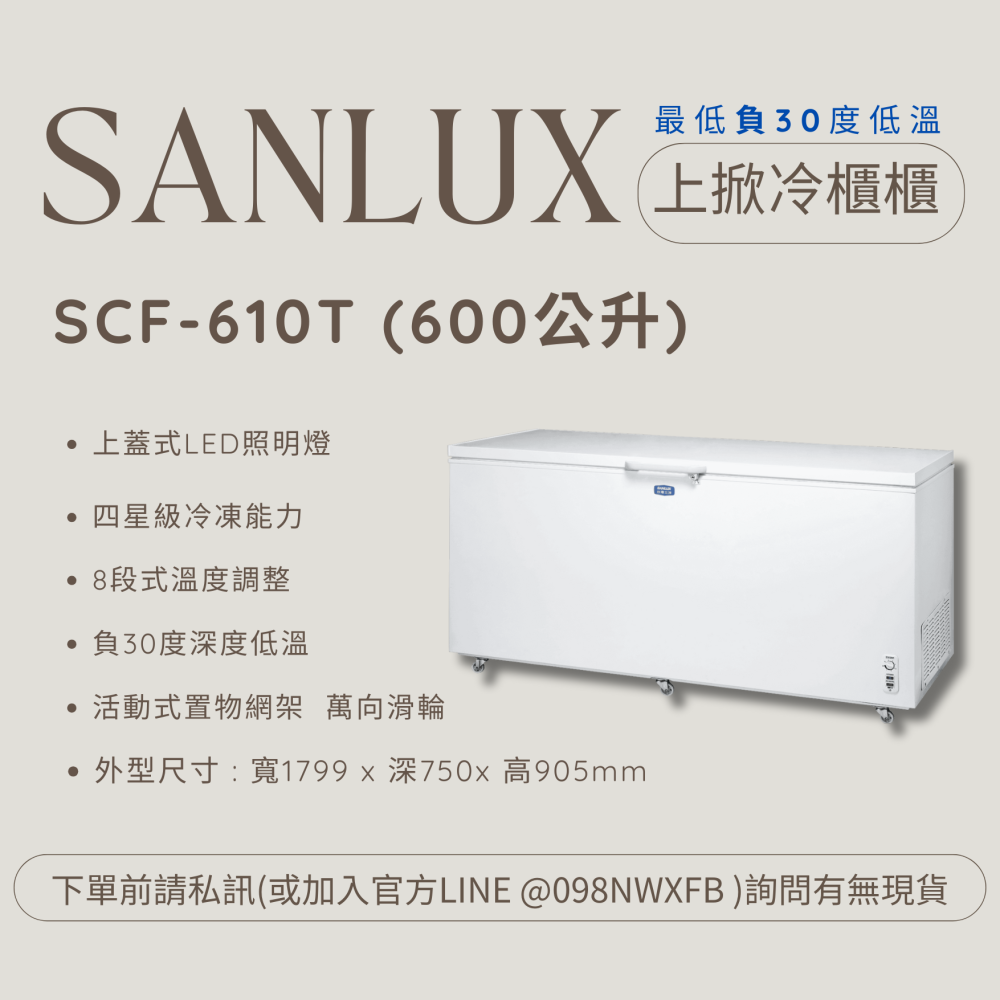台灣三洋上掀式冷凍櫃 【大公升數】 SCF-616G/SCF-610T【刷卡分期免手續費】貨到付更優惠