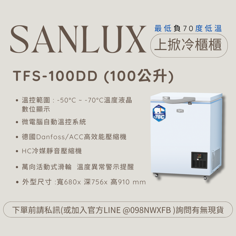 台灣三洋上掀式-70度冷凍櫃 TFS-100DD 【100公升】【刷卡分期免手續費】貨到付更優惠