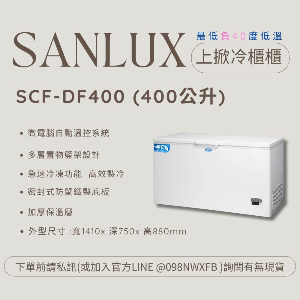 台灣三洋上掀式-40度冷凍櫃 SCF-DF400 【400公升】【刷卡分期免手續費】貨到付更優惠