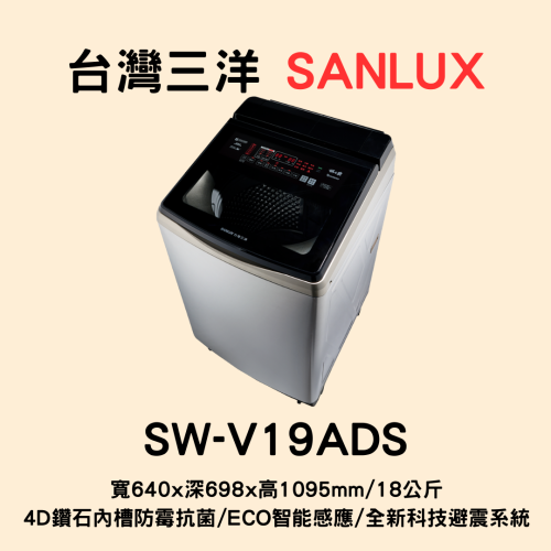 【三洋媽媽樂 】SW-V19ADS 三洋變頻洗衣機 19KG【刷卡分期免手續費】貨到付更優惠