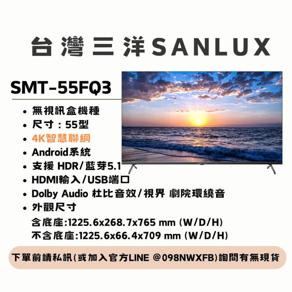【三洋液晶電視】SMT-55FQ3【55吋】【無視訊盒機種】【刷卡分期免手續費】現金另有優惠 多台另議~