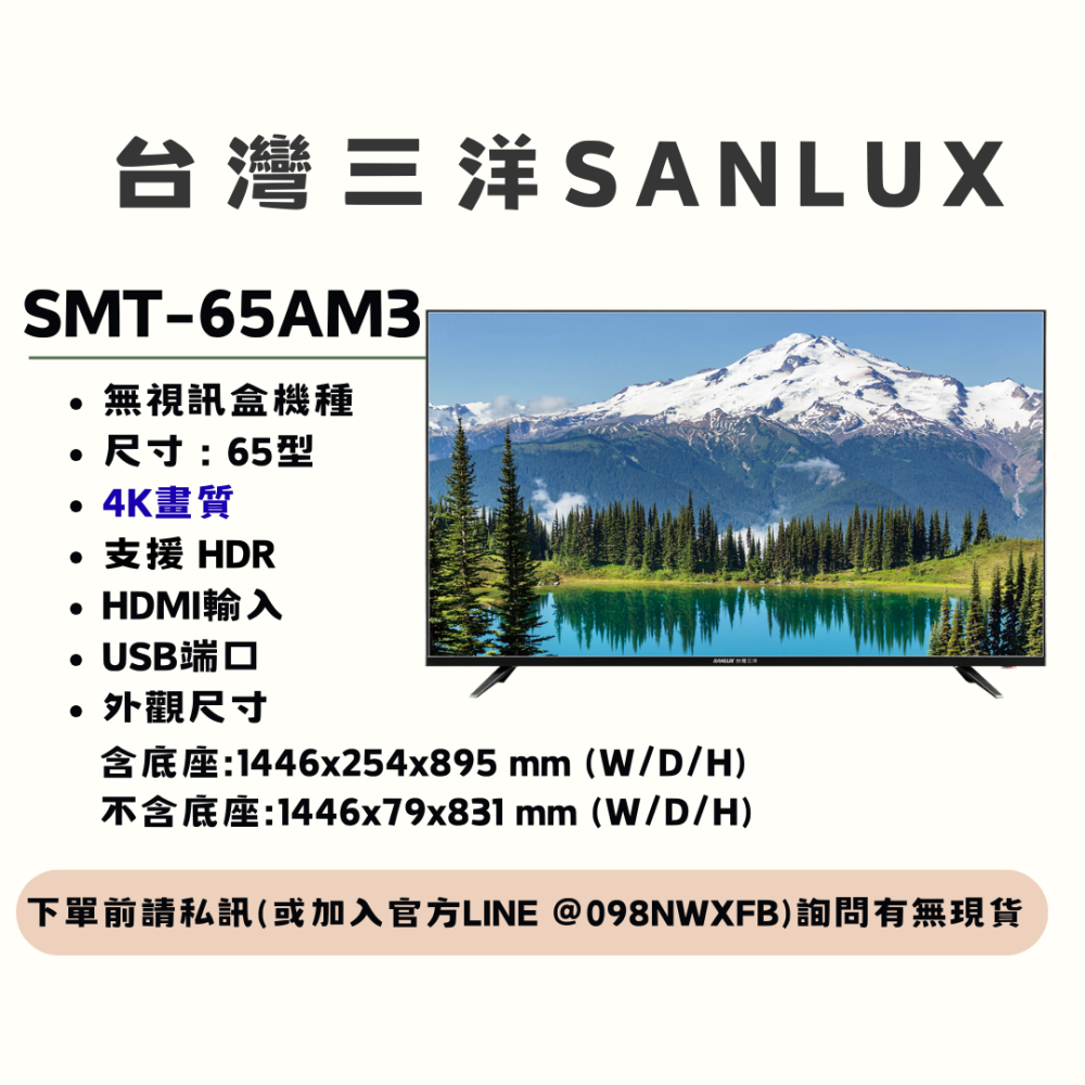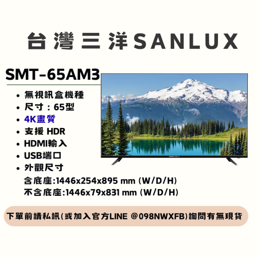 【三洋液晶電視】SMT-65AM3【65吋】【無視訊盒機種】【刷卡分期免手續費】現金另有優惠 多台另議~