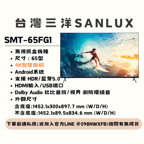 【三洋液晶電視】SMT-65FG1【65吋】【無視訊盒機種】【刷卡分期免手續費】現金另有優惠 多台另議~