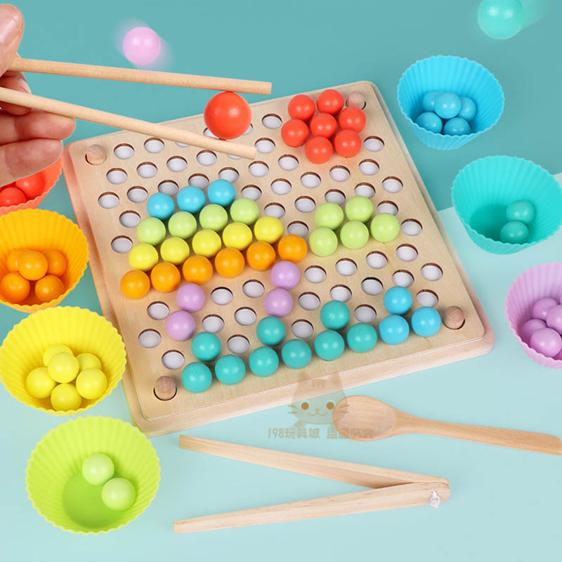 • 木製筷子夾珠遊戲