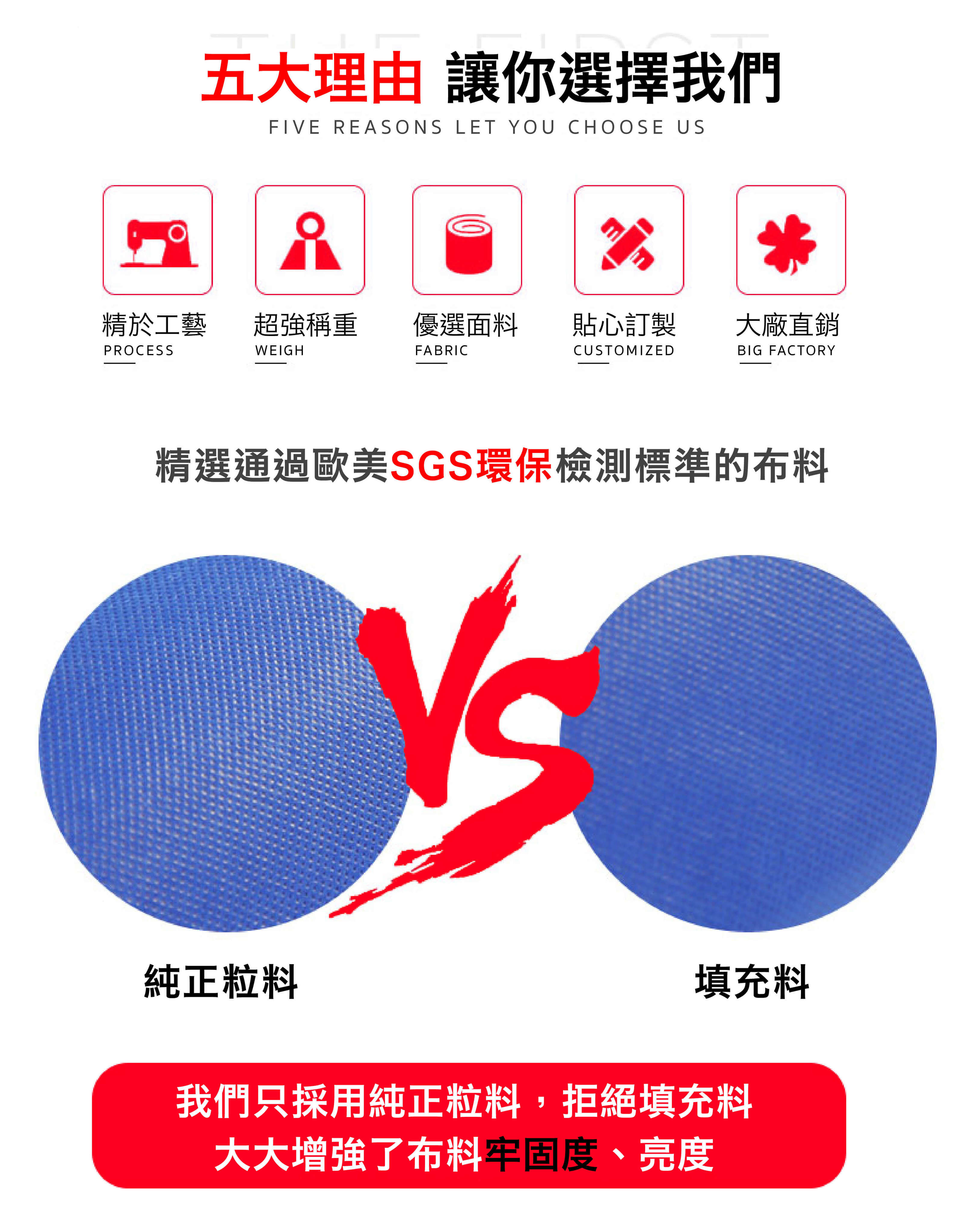 可重複使用、可洗滌、可絲印廣告、保存及使用期限長,