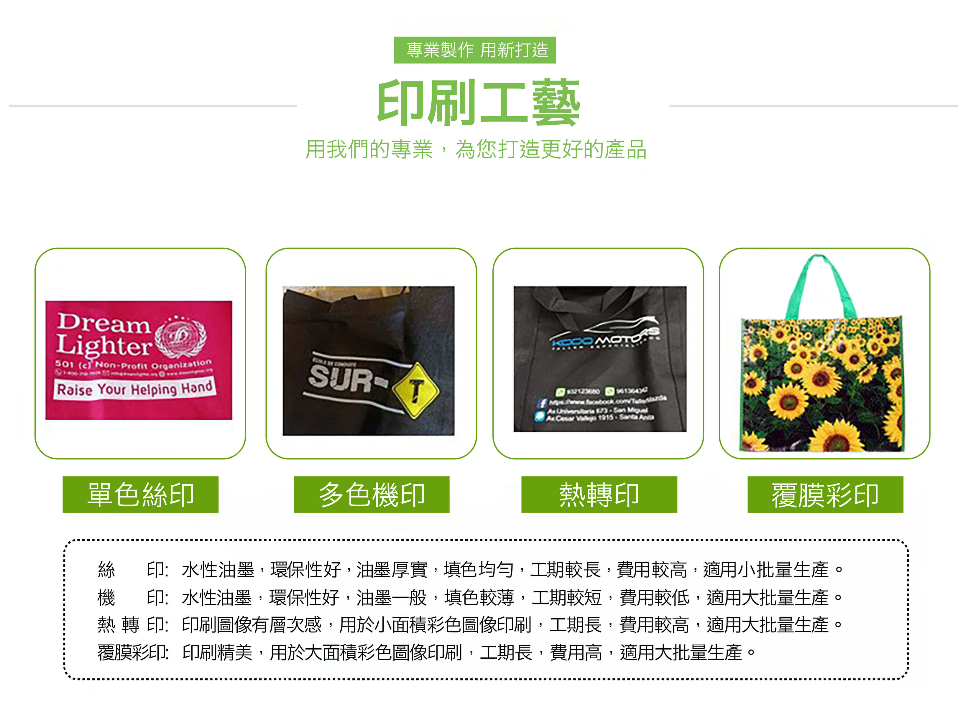 無紡布袋是一種綠色產品,堅韌耐用、造型美觀,透氣性好