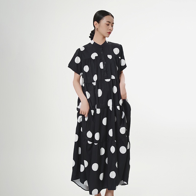 歐美簡約波點蛋糕裙,夏季女裝連身裙不挑身型皆合適5392853-92