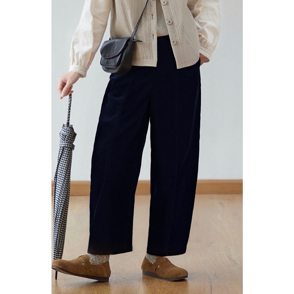 秋冬闊腿褲 九分加厚燈心絨 純棉磨毛拼接 直筒型寬鬆版 舒適休閒