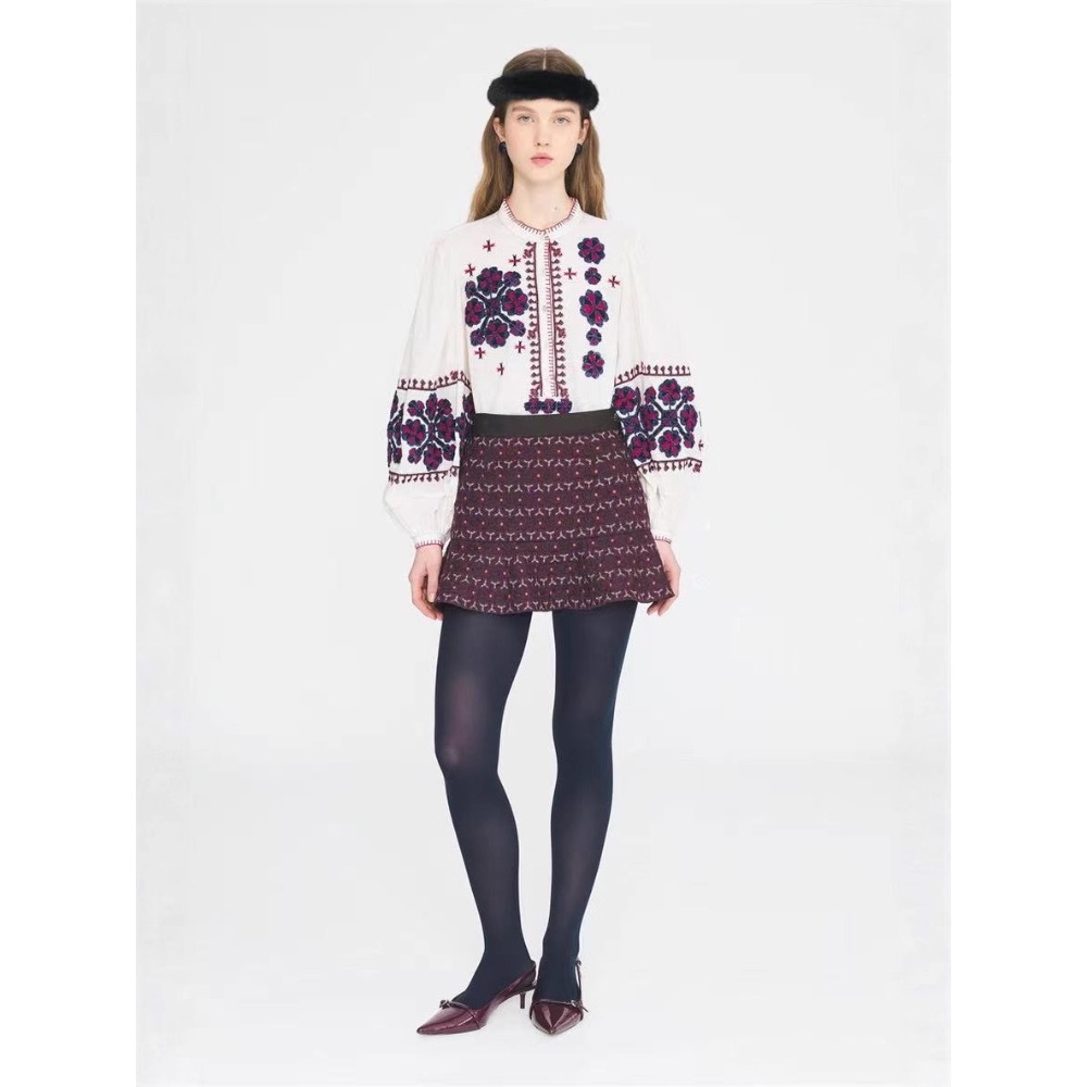 #泡泡袖復古刺繡襯衫