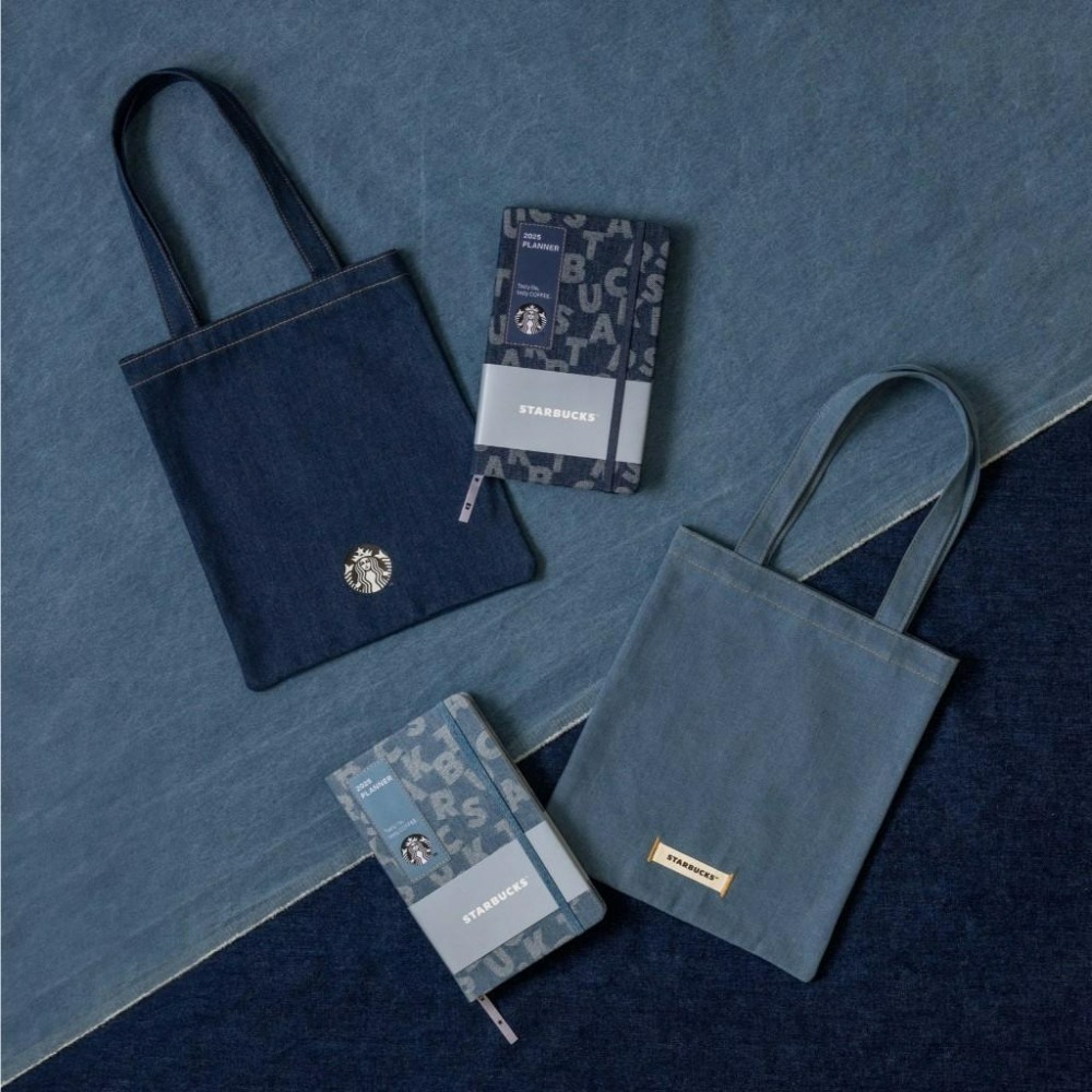 星巴克 2025年曆提袋組 淺藍緹花 25年曆提袋組深藍緹花 年曆 買一送一券