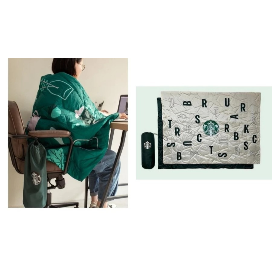 星巴克 毛毯 隨身毯 秋日星意保暖毯 米色 綠色