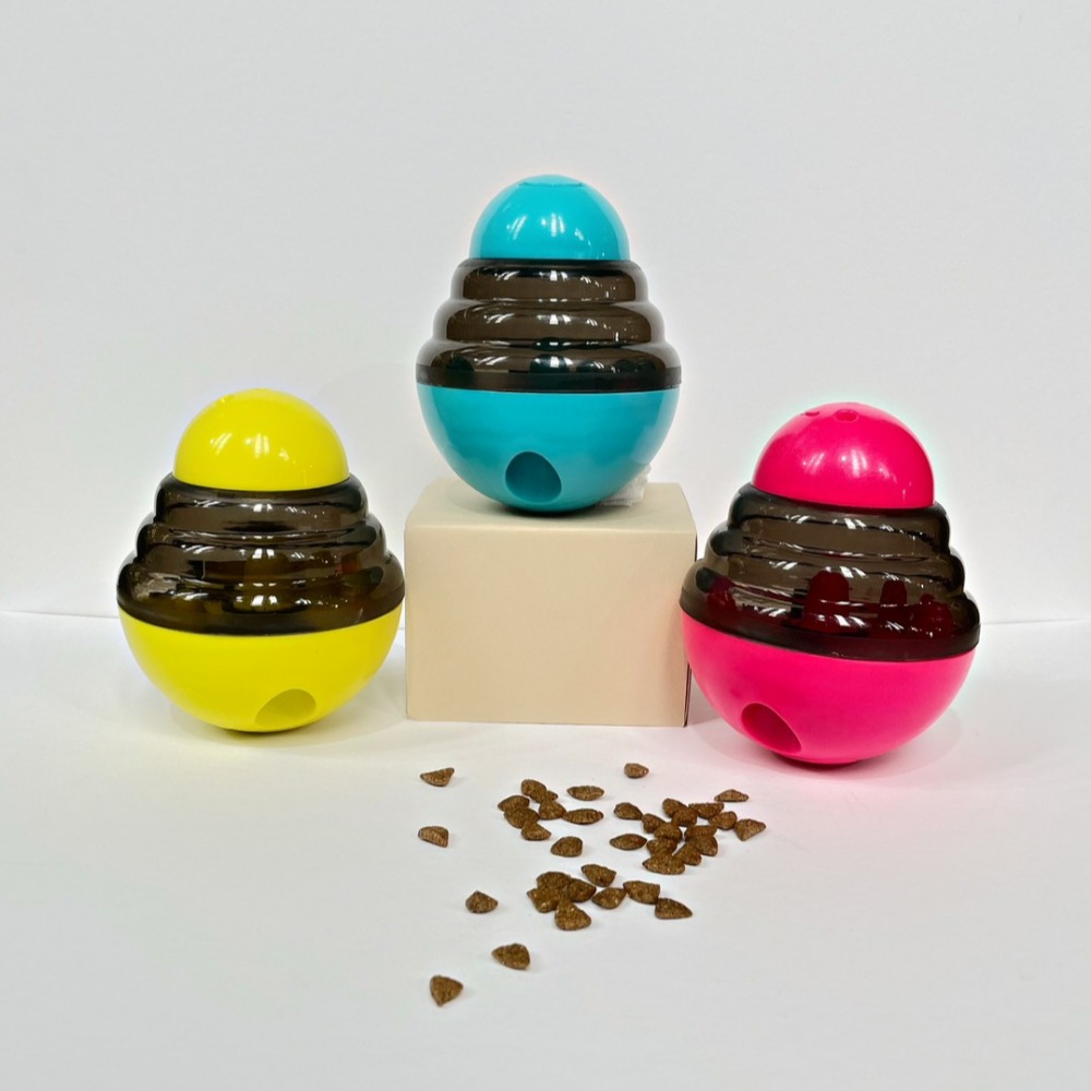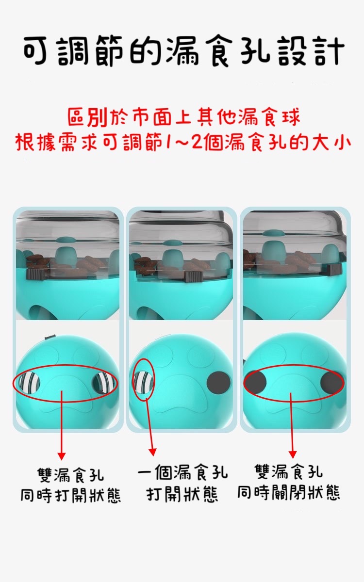 不倒材質,建議放入飼料及零食可依照動孔大小自行做零食及飼料的調適,可訓練毛孩的耐性、消耗精力,提升智力。