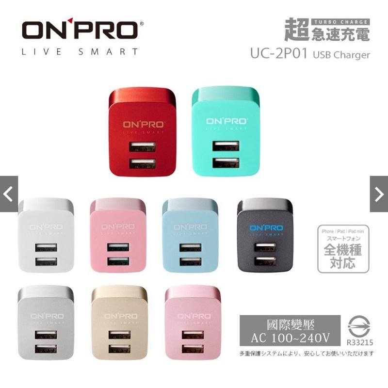現貨金屬色限定版ONPRO UC-2P01 雙USB輸出電源供應器/充電器(5V/2.4A) 玫瑰金 黑色白色紫色 插頭