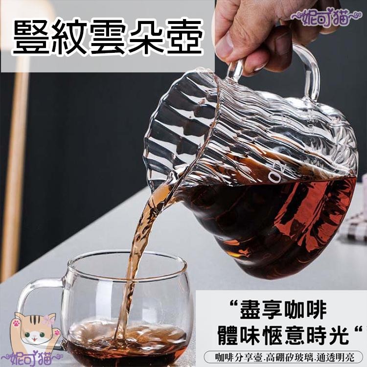 【新品】豎紋雲朵壺 手沖咖啡壺 耐熱玻璃壺360/600/700ml雲朵分享壺 手沖咖啡壺 花茶壺 泡茶壺
