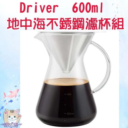 Driver 地中海不銹鋼濾杯組 600ml│地中海玻璃壺 900ml 咖啡濾杯組 手沖濾杯 造形玻璃壺 玻璃分享壺