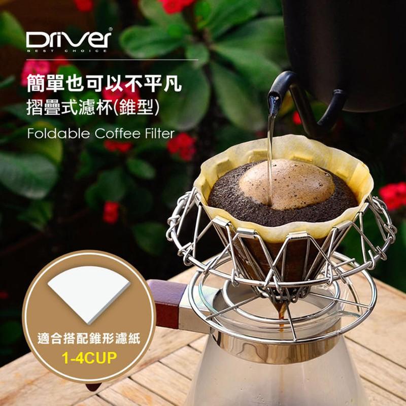 送【店家計量匙+專用清潔棉】錐形 Driver 可摺疊式濾杯 不鏽鋼濾杯 V型 可摺式 咖啡濾杯 HM-ZDV60-A1