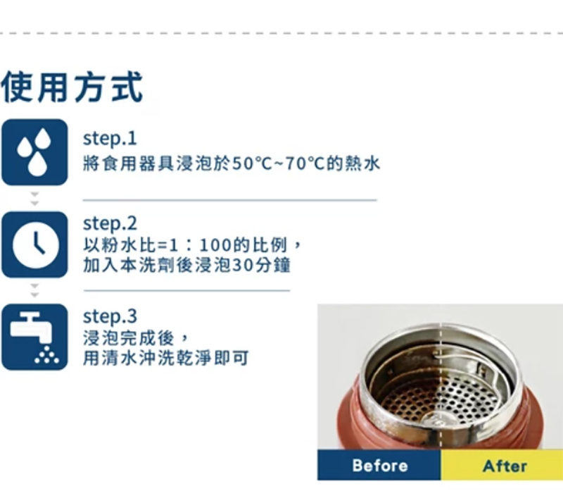 建議比例:1g的粉加100g的溫水,約50-70度