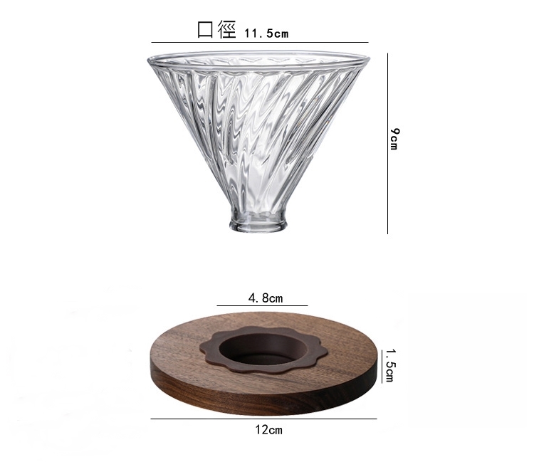 品名:斜紋玻璃濾杯+竹木托(帶矽膠)