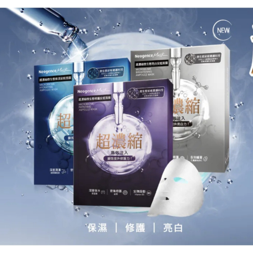 霓淨思Neogence 超濃縮微生態保濕安瓶面膜4片/超濃縮微生態修護安瓶面膜4片/超濃縮微生態亮白安瓶面膜4片