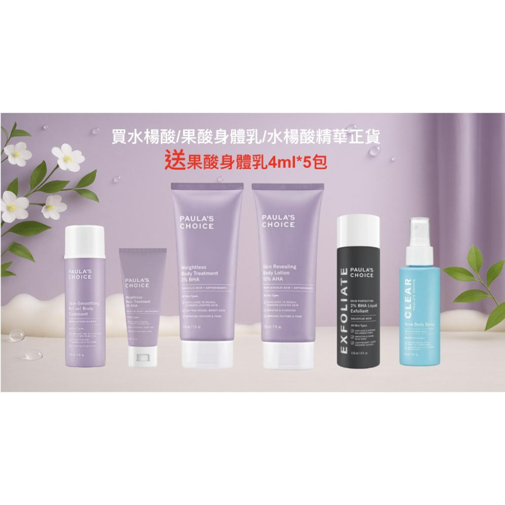 寶拉珍選2%水楊酸身體乳10%果酸身體乳/水楊酸美體噴霧/水楊酸緊緻毛孔精露購買正貨身體乳精華液送身體乳體驗包五包