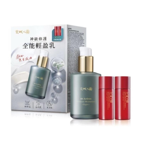 商品規格 商品簡述:熱銷第一全能乳,無香減油,保養力不變。買1全能輕盈乳液送2導入美容液。 規格:120ml+30mlx2 原產地:台灣 深、寬、高:7.0x10.0x14.8 保存環境:室溫 有效期限:三年 注意事項:敏感肌請小心使用。