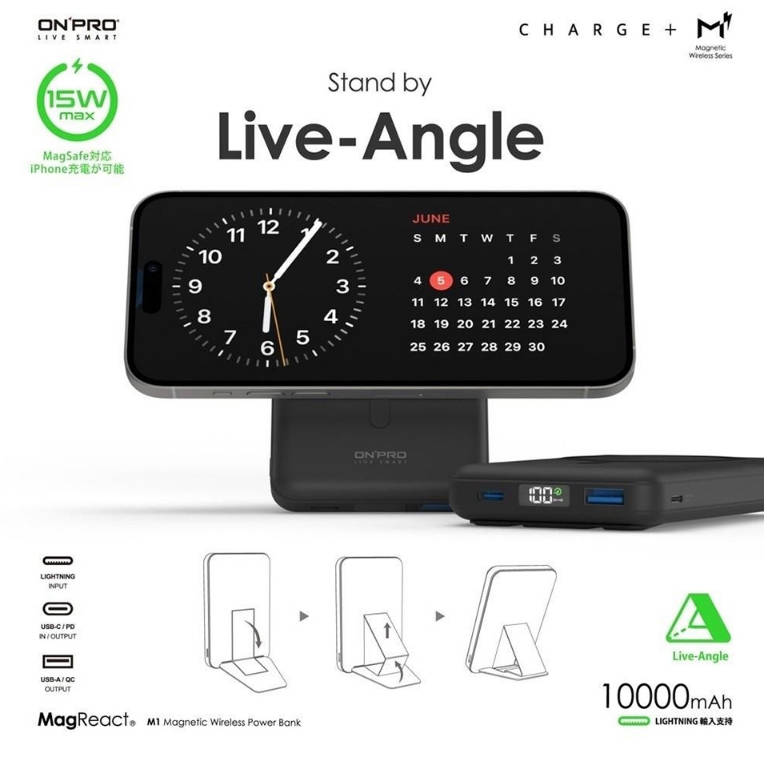- 可為iPhone 12或後續機型提供磁吸無線充電,過往機型或安卓手機皆需搭配支援MagSafe磁吸保護殼或是引磁環使用